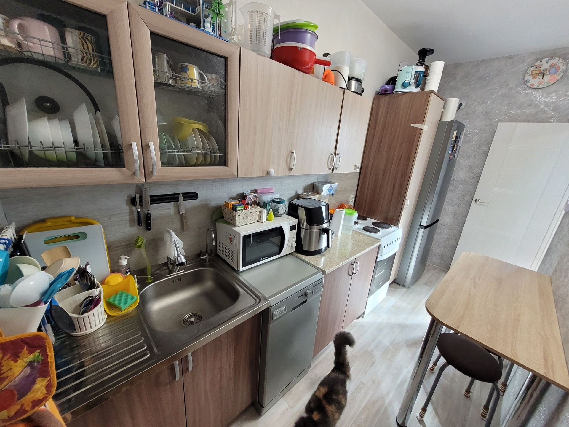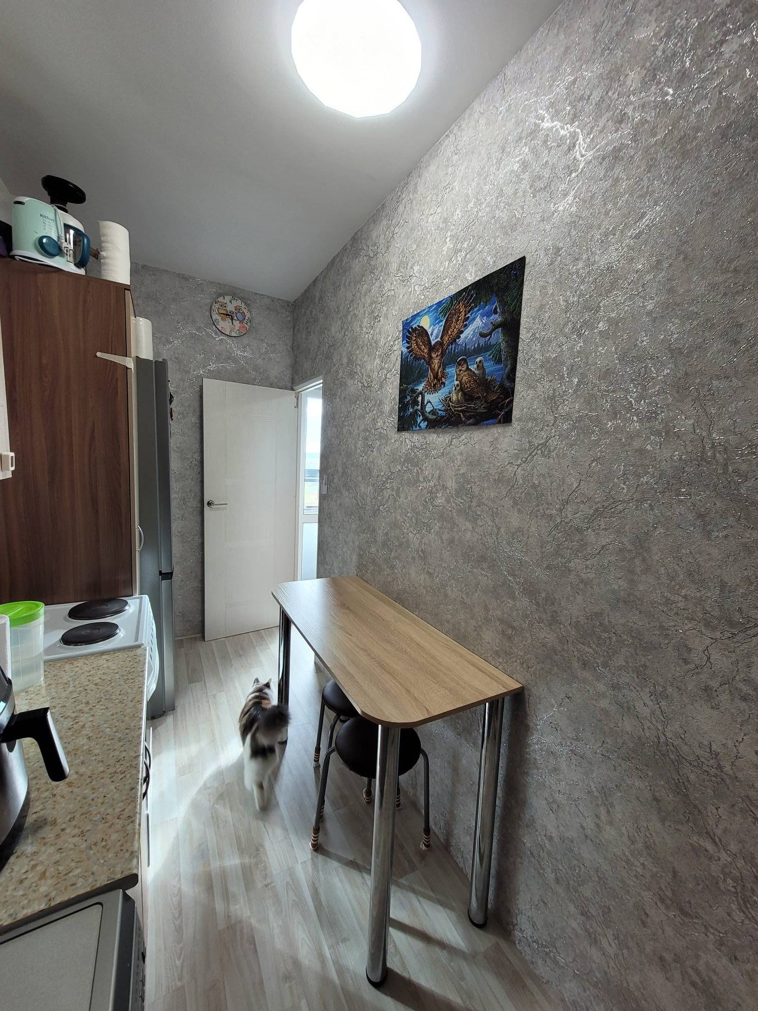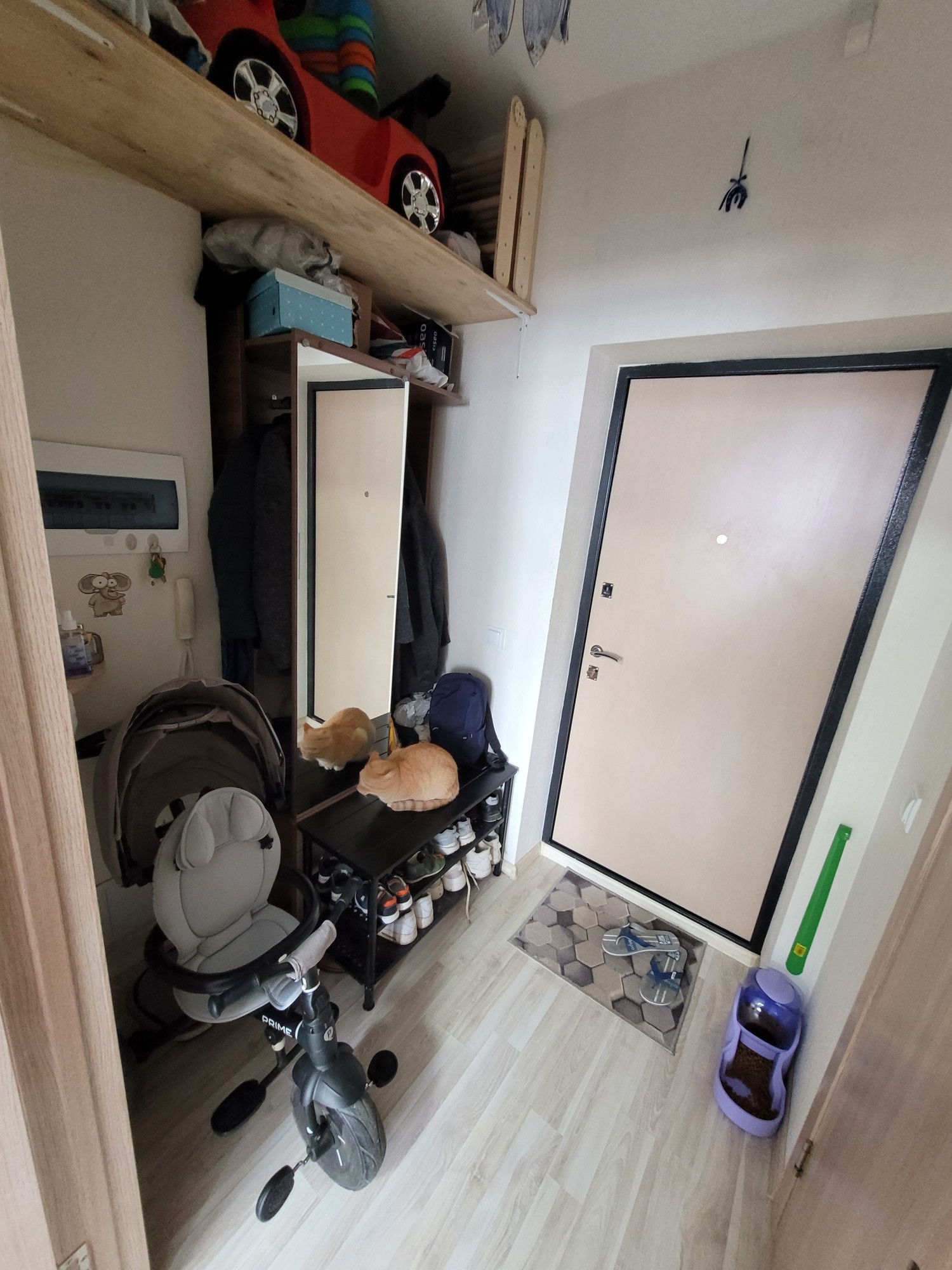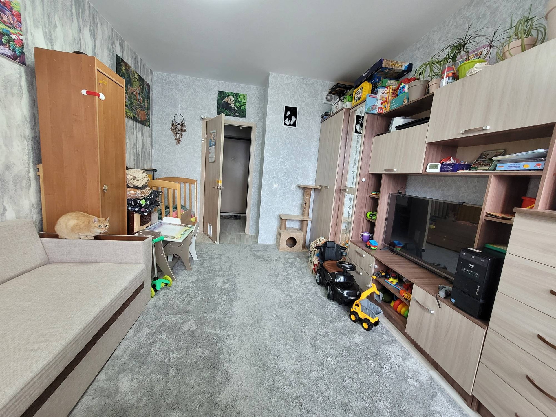 В квартире остаётся: кухонный гарнитур и стол кухонный, из комнаты шкаф пенал, в прихожей шкаф с зеркалом.
