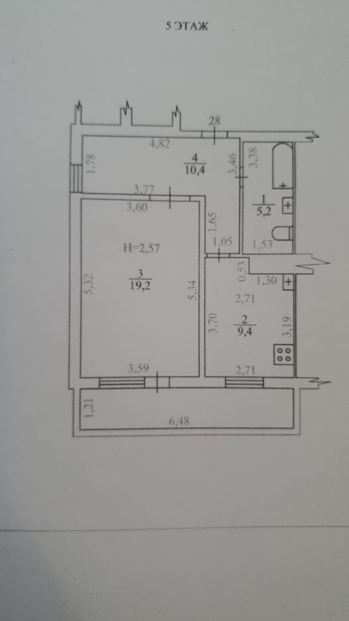 Общая площадь 44.2 м2