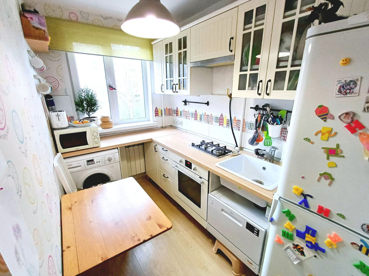 При необходимости оставим кухонный гарнитур с варочной поверхностью и духовым шкафом.