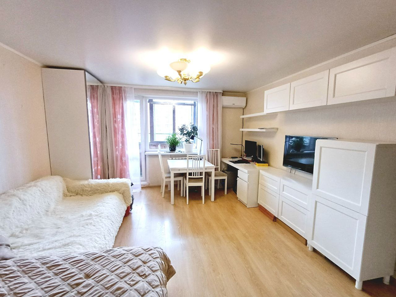 В квартире выполнен ремонт - натяжные потолки, ламинат, поменяны радиаторы отопления, санузел раздельный, полностью в кафеле, установлены счетчики ГВС/ХВС, кондиционер. В санузле установлены фильтры для очистки воды.