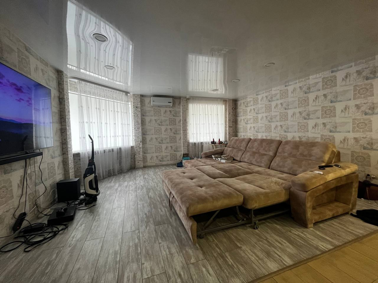 В помещении выполнен качественный ремонт, установлен кухонный гарнитур, мебель и техника передаётся покупателю.