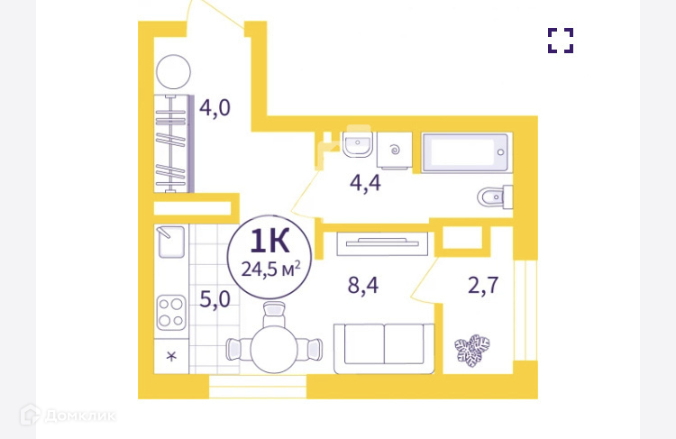 Общая площадь 21.8 м2