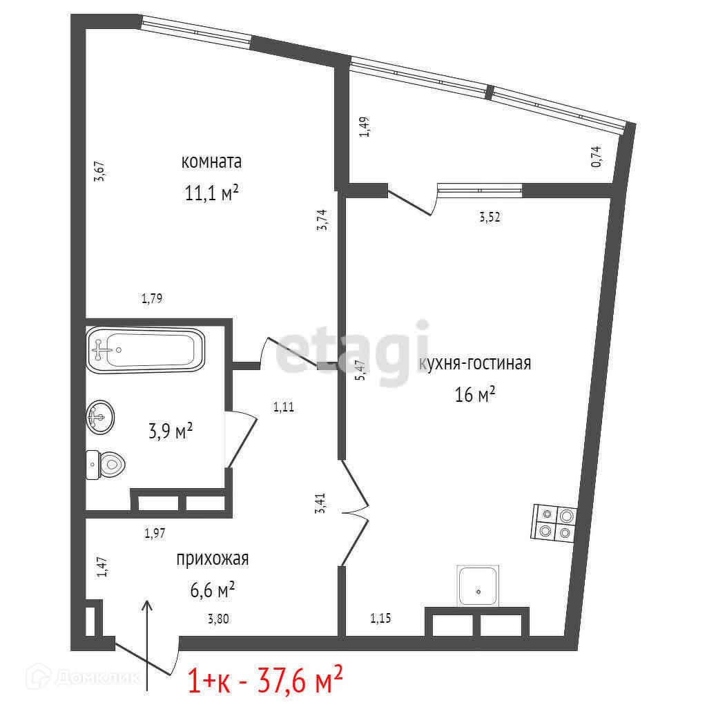 -Очень удобная планировка; кухня-гостиная 16кв.м.с выходом на лоджию+комната 11,1кв.м