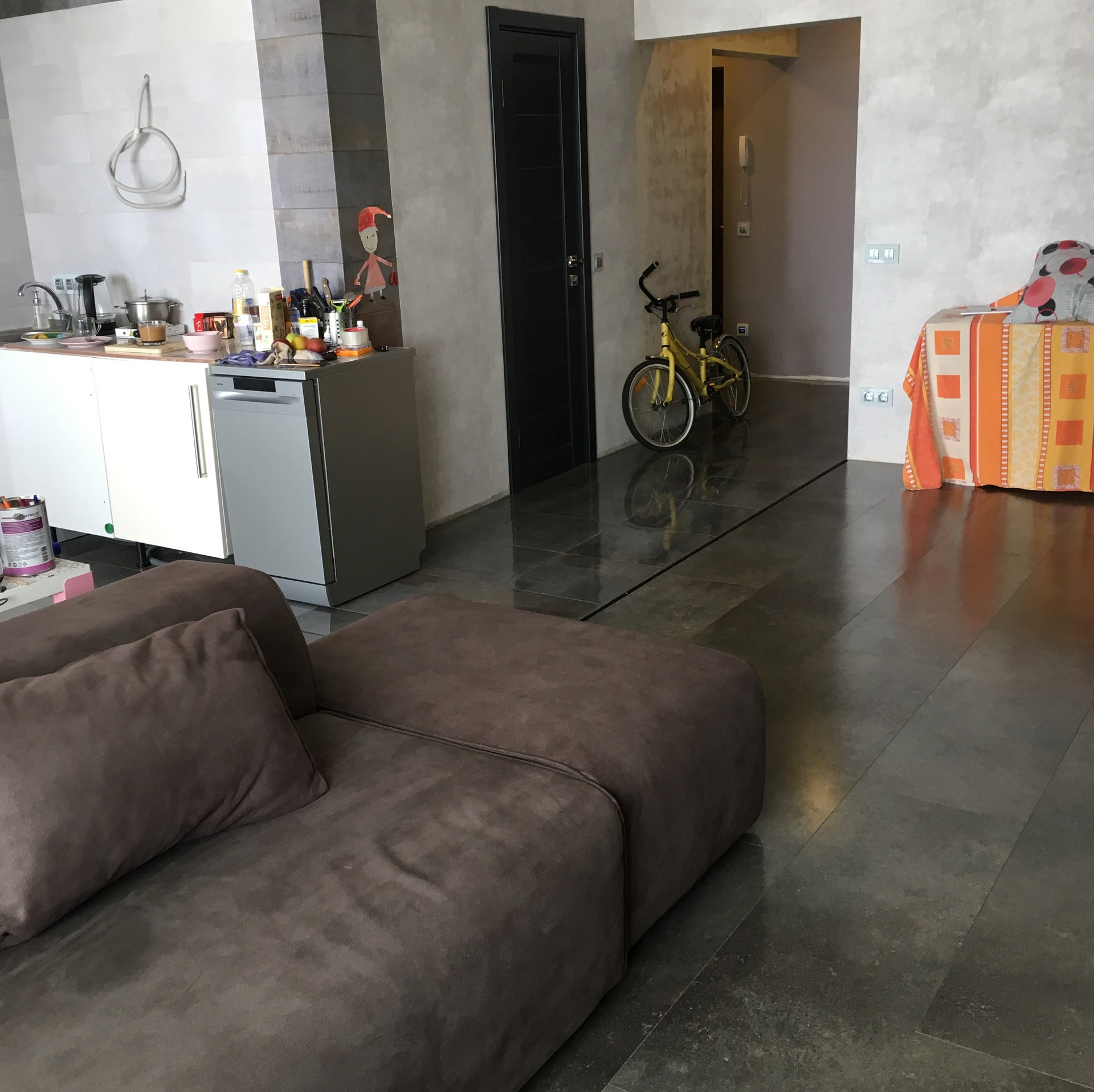 Отделка выполнена из надежных европейских материалов. Теплые полы DEVI, качественная сантехника. Потолки во всех помещениях комбинированные: гипсокартон со вставками натяжного, с нишами для штор. Оба балкона утеплены как полноценные комнаты, панорамное остекление. Радиаторы с термоголовками спрятаны в ниши. Проложены трассы для двух сплит систем в гостиной и спальне.