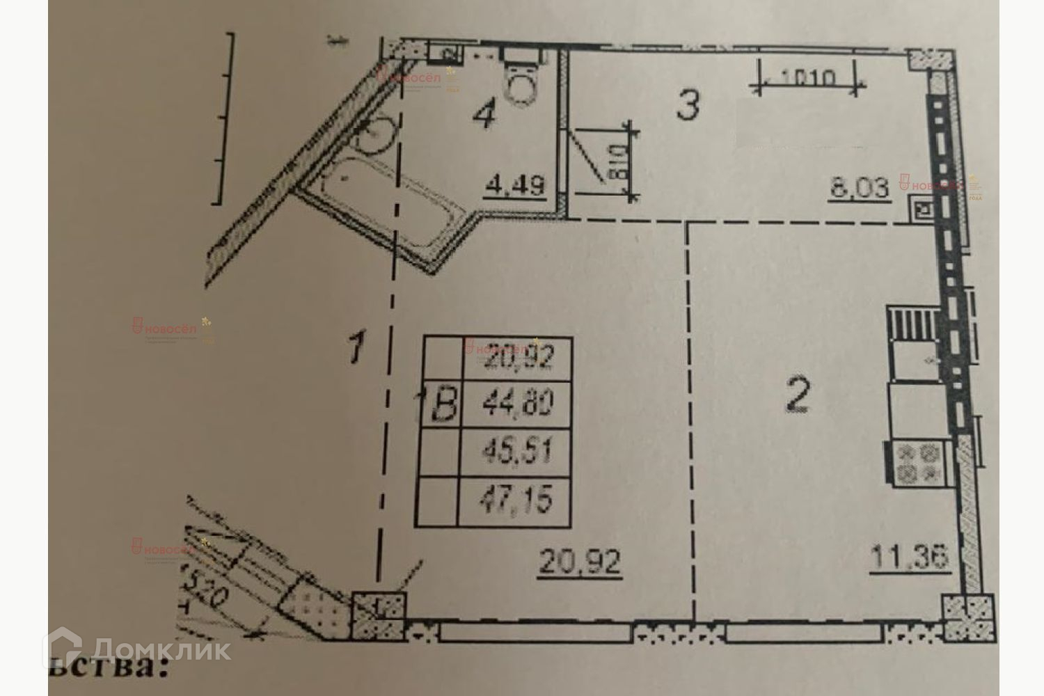 Общая площадь 44 м2