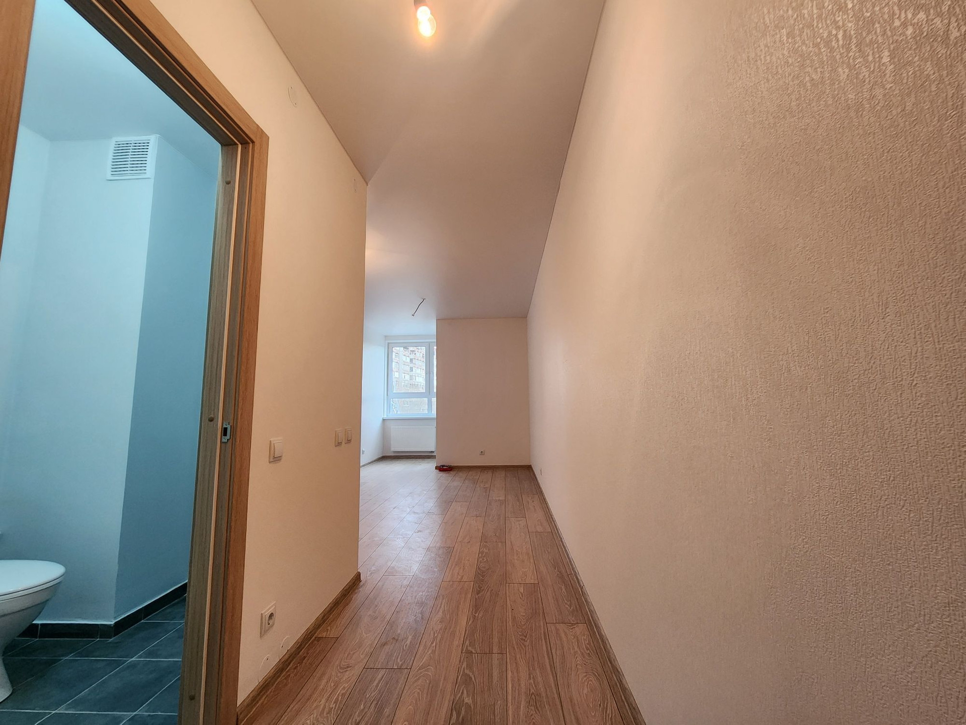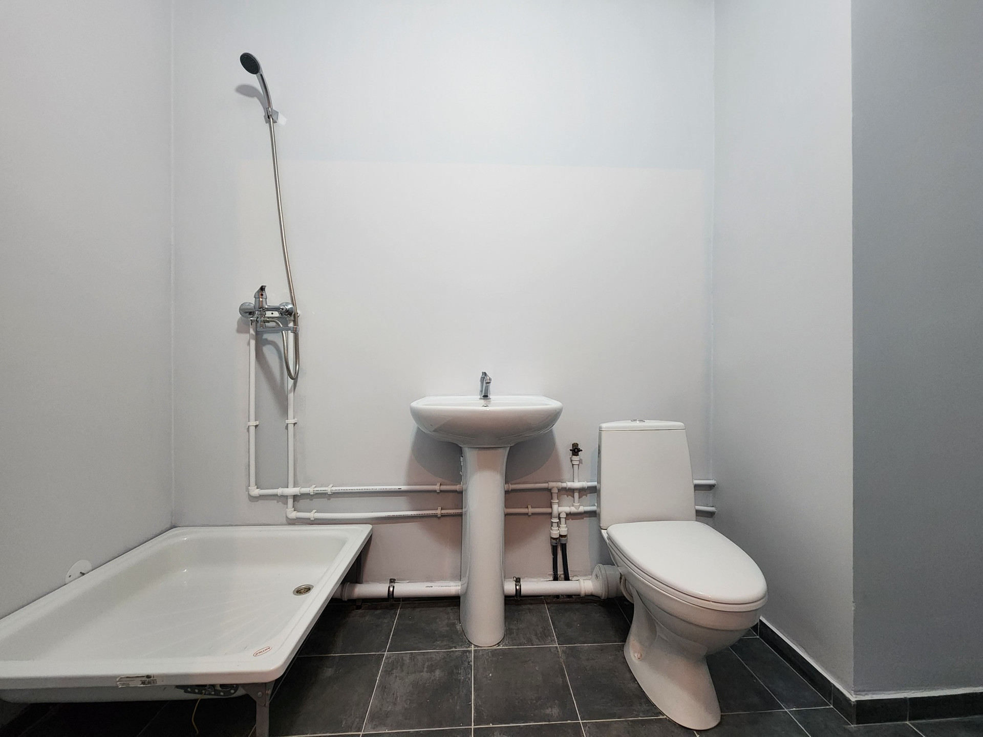 Новый дом, только сдан. Выполнен ремонт под ключ от застройщика: на полу ламинат, натяжной потолок, на стенах обои под покраску, в санузле - умывальник, унитаз, душевой поддон.
