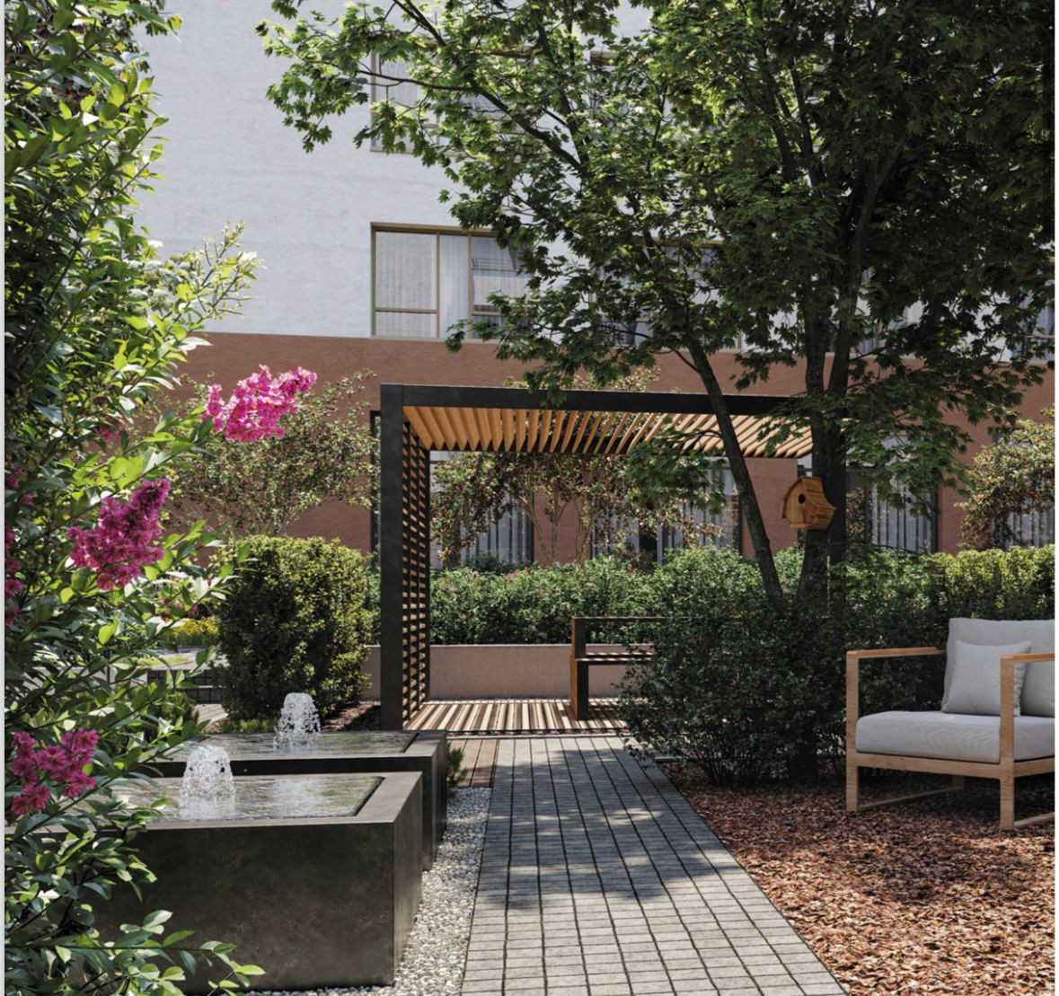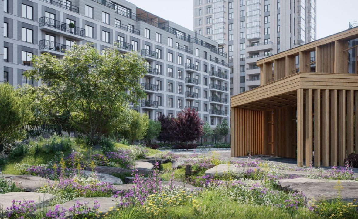 Закрытые дворы-парки без машин. Дворы похожи на мини-парки: Разновысотный ландшафт, максимальное озеленение, лежаки, лабиринты из растений и многое другое!