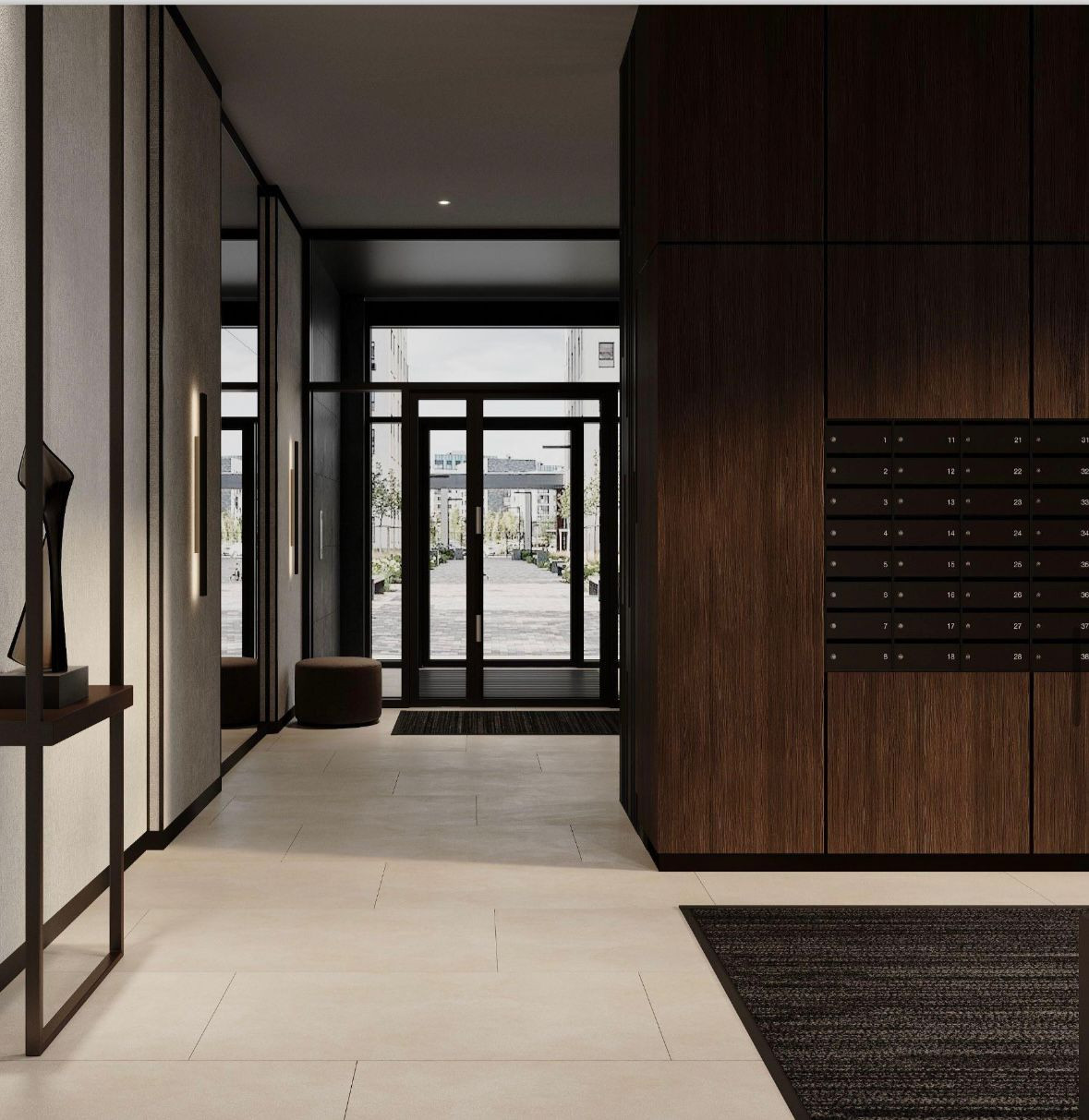 Зоны совместного пользования: мягкие уголки и зоны для ожидания, картины, озеленение в подъездах.