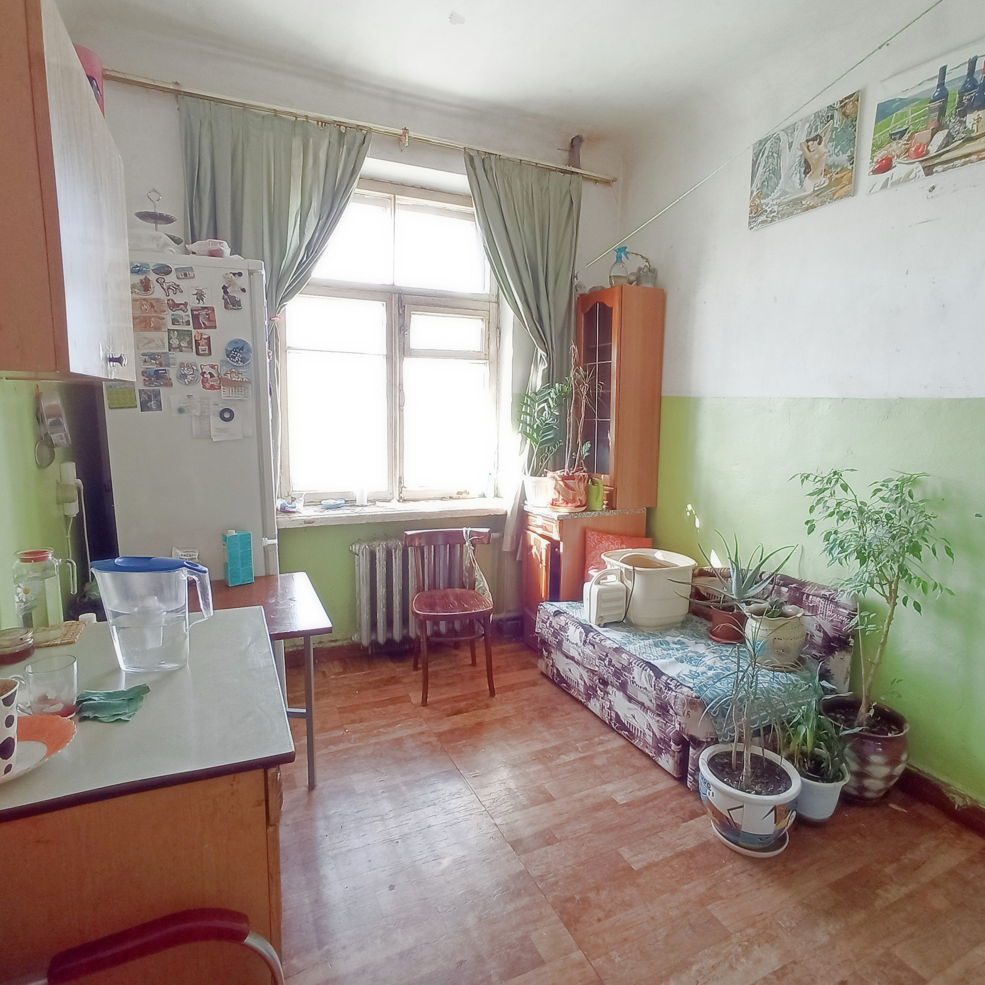 В комнатах пластиковые окна, отделан балкон. Состояние в квартире позволяет сделать ремонт на свой вкус не переделывая чужой.  В доме был капитальный ремонт, подъезд чистый, хорошие соседи.  Все окна выходят на солнечную сторону – юго-запад, в зеленый двор. Квартира очень теплая и светлая, хорошая звукоизоляция.