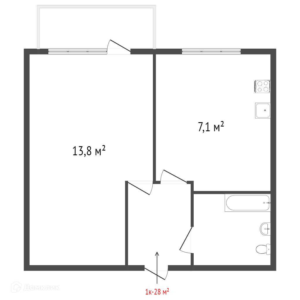 Общая площадь 30.2 м2