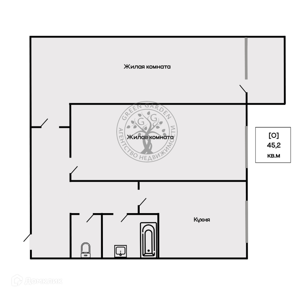 Общая площадь 45.2 м2