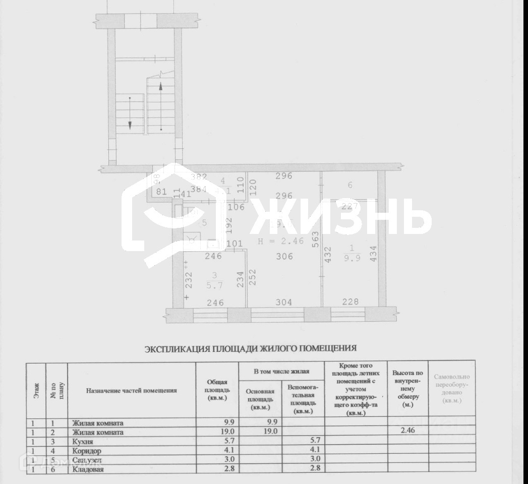 Комнаты смежные - 19,0 и 9,9 м2. Кухня - 5,7 м2. Подведён газ. Санузел совмещенный - 3,0 м2, с душевой кабиной.