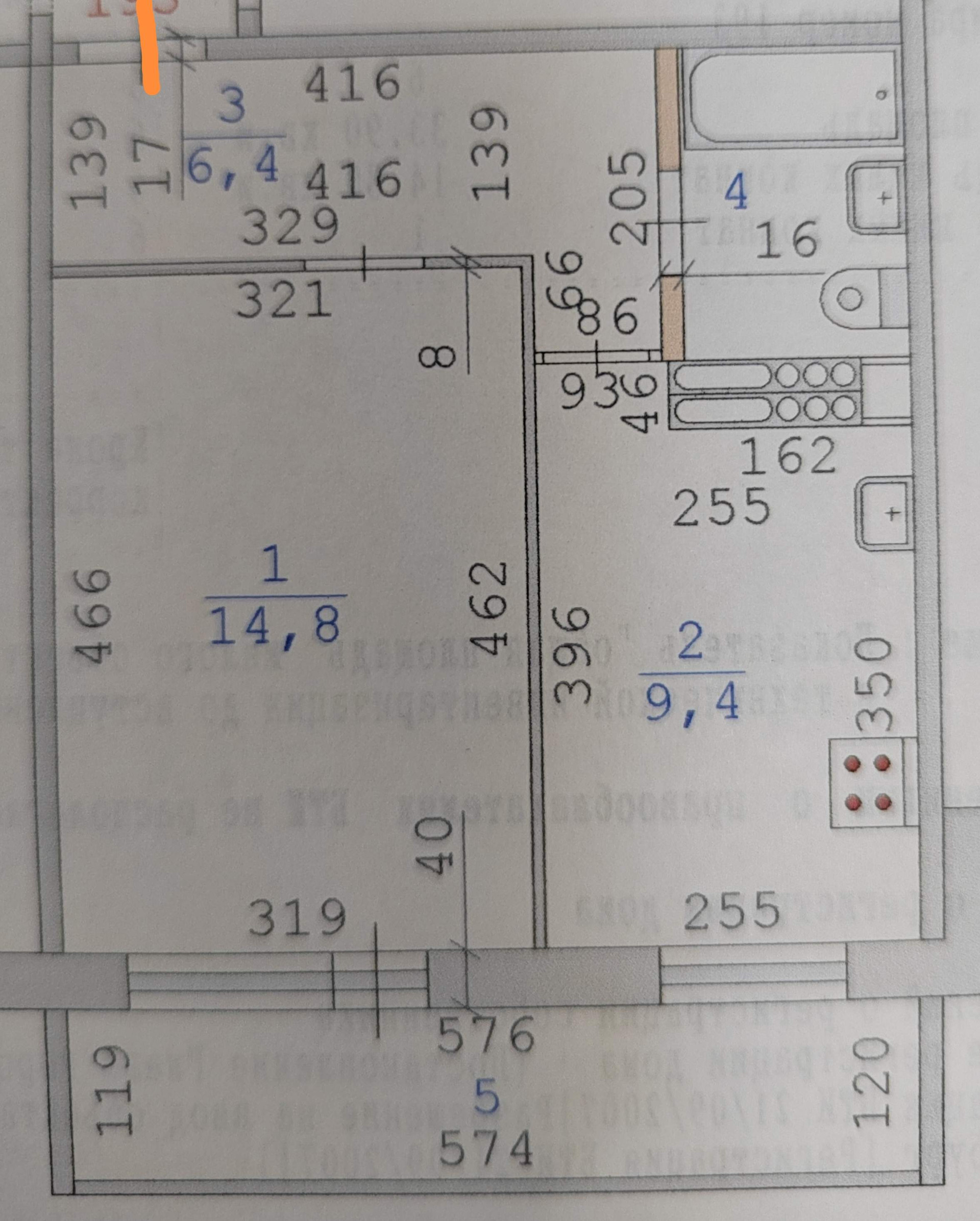 Балкон, лоджия 1 балкон