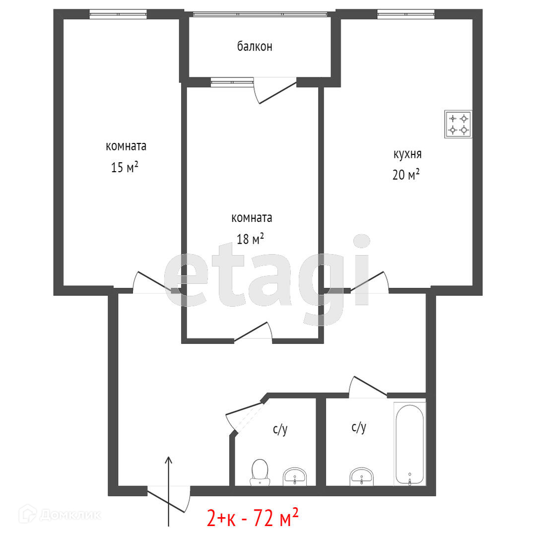 Количество комнат 2