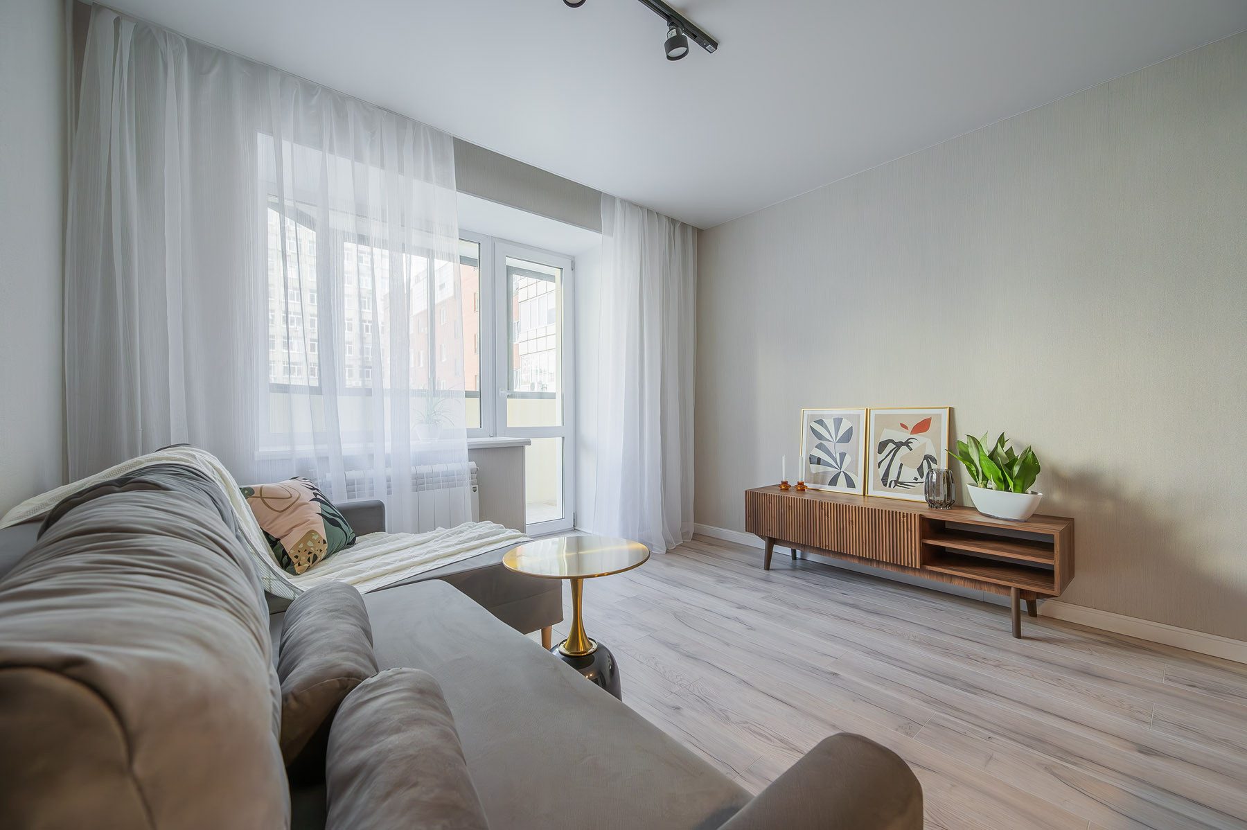 Мы продумали функциональную планировку: спальня 10м кв с большой кроватью , вместительным шкафом, гардеробная, кухня- гостиная 16 м кв с гарнитуром под заказ и техникой (варочная панель индукционная, холодильник, духовой шкаф и посудомоечная машина). Функциональная прихожая, а так же ванная комната с окном в кухню. Санузел совмещен установлена стиральная машиной. Про лоджию мы тоже не забыли, там расположилась уютнейшая релакс зона.
