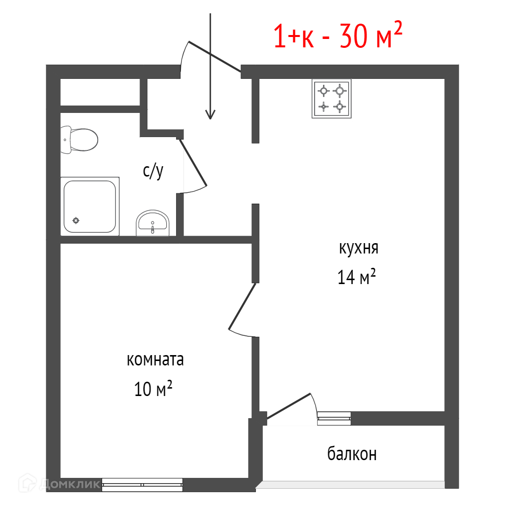 Общая площадь 30.52 м2
