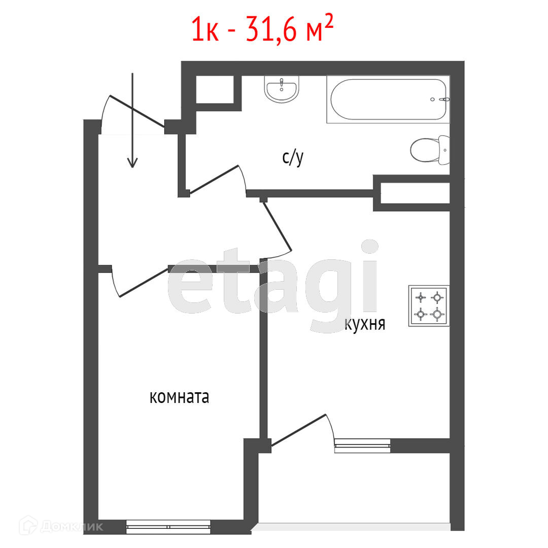 Общая площадь 31.7 м2