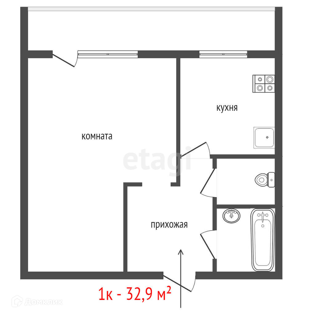 Общая площадь 32.9 м2