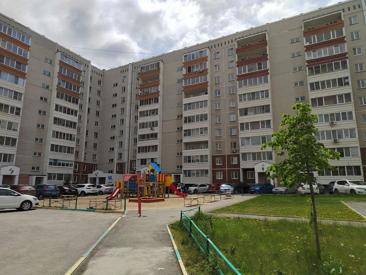 Парковка во дворе под видеонаблюдением.