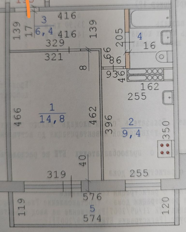Площадь кухни 9.7 м2