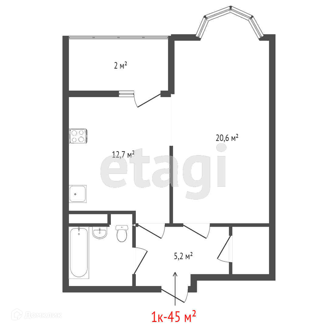 Общая площадь 45 м2