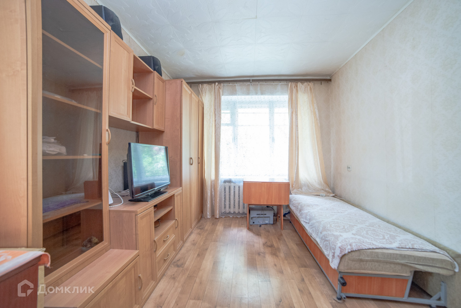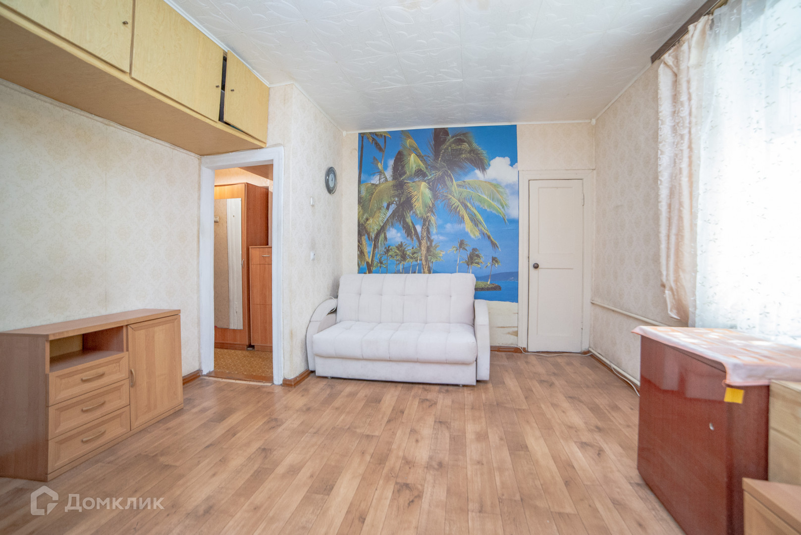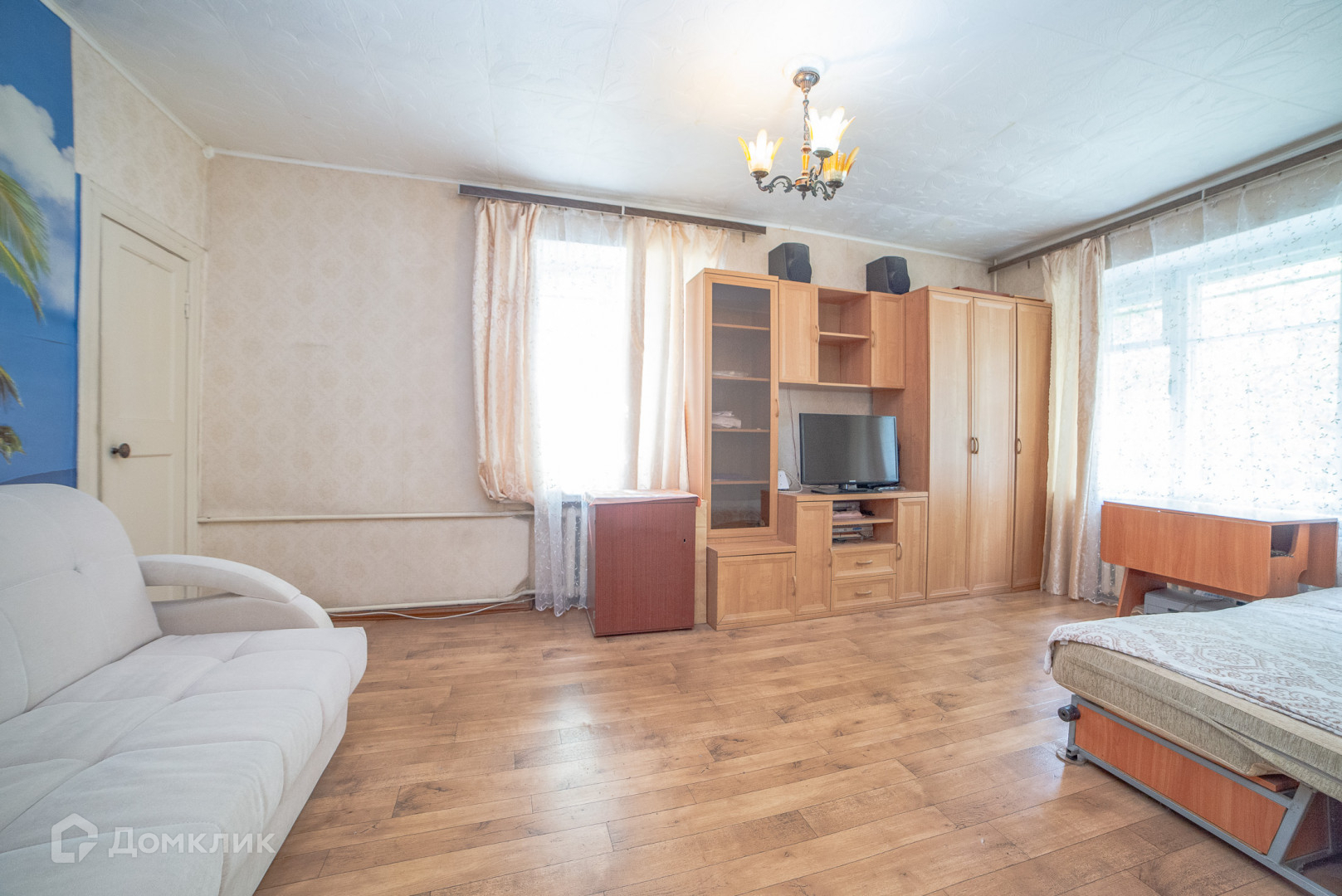 Светлая квартира, в комнате два окна. Высота потолка 2.7 метра.