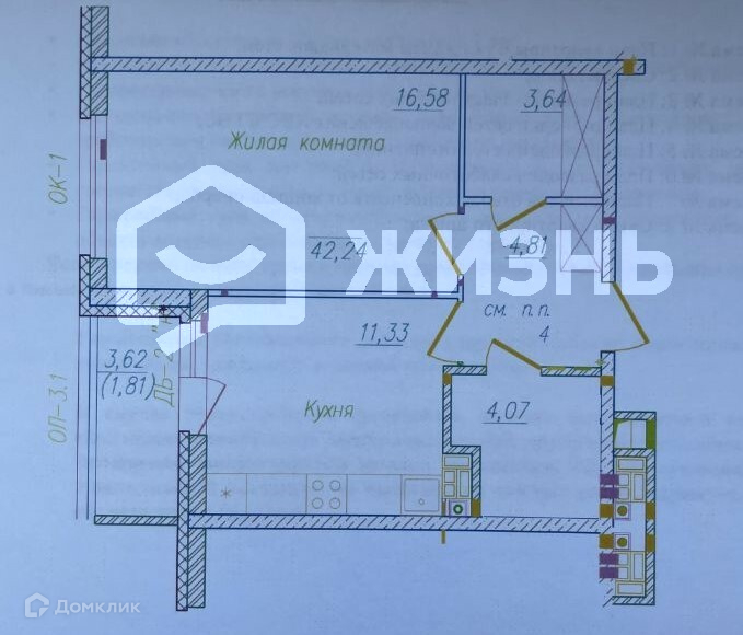 Общая площадь 41.1 м2