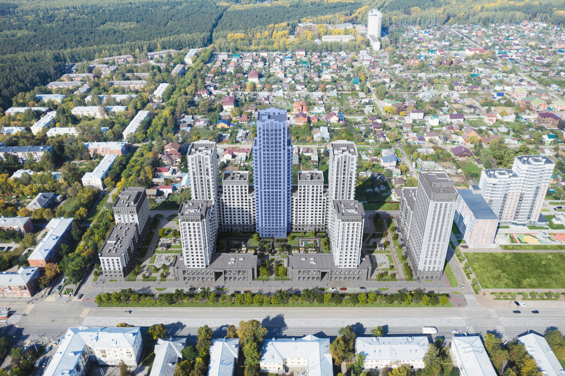 Развитая инфраструктура района включает в себя школы, детские сады, торговые центры, парк для прогулок и фитнес-центры, благодаря чему повседневная жизнь становится максимально комфортной и насыщенной. Для активного времяпрепровождения и игр детей во дворе оборудованы детская и спортивная площадки.