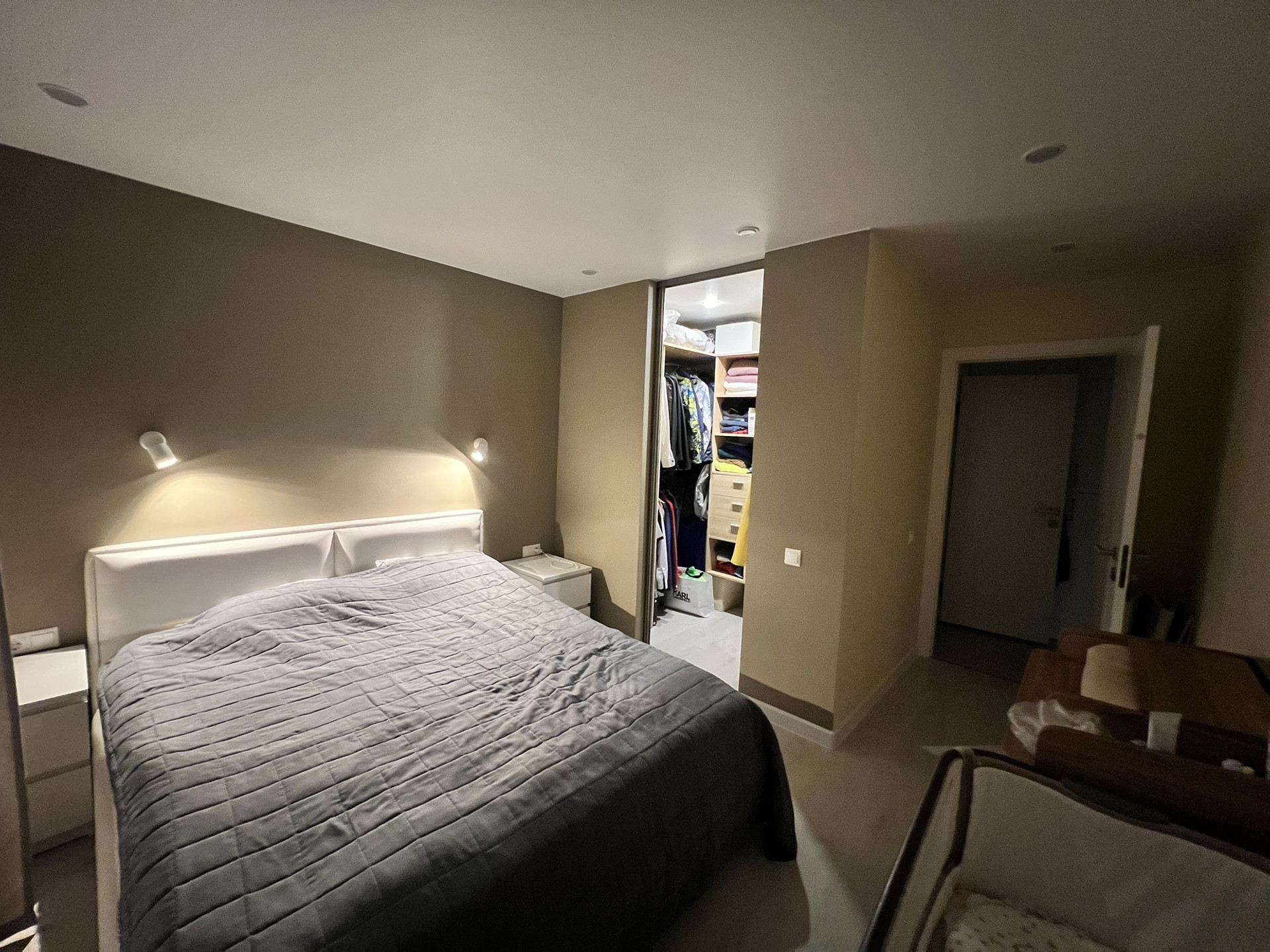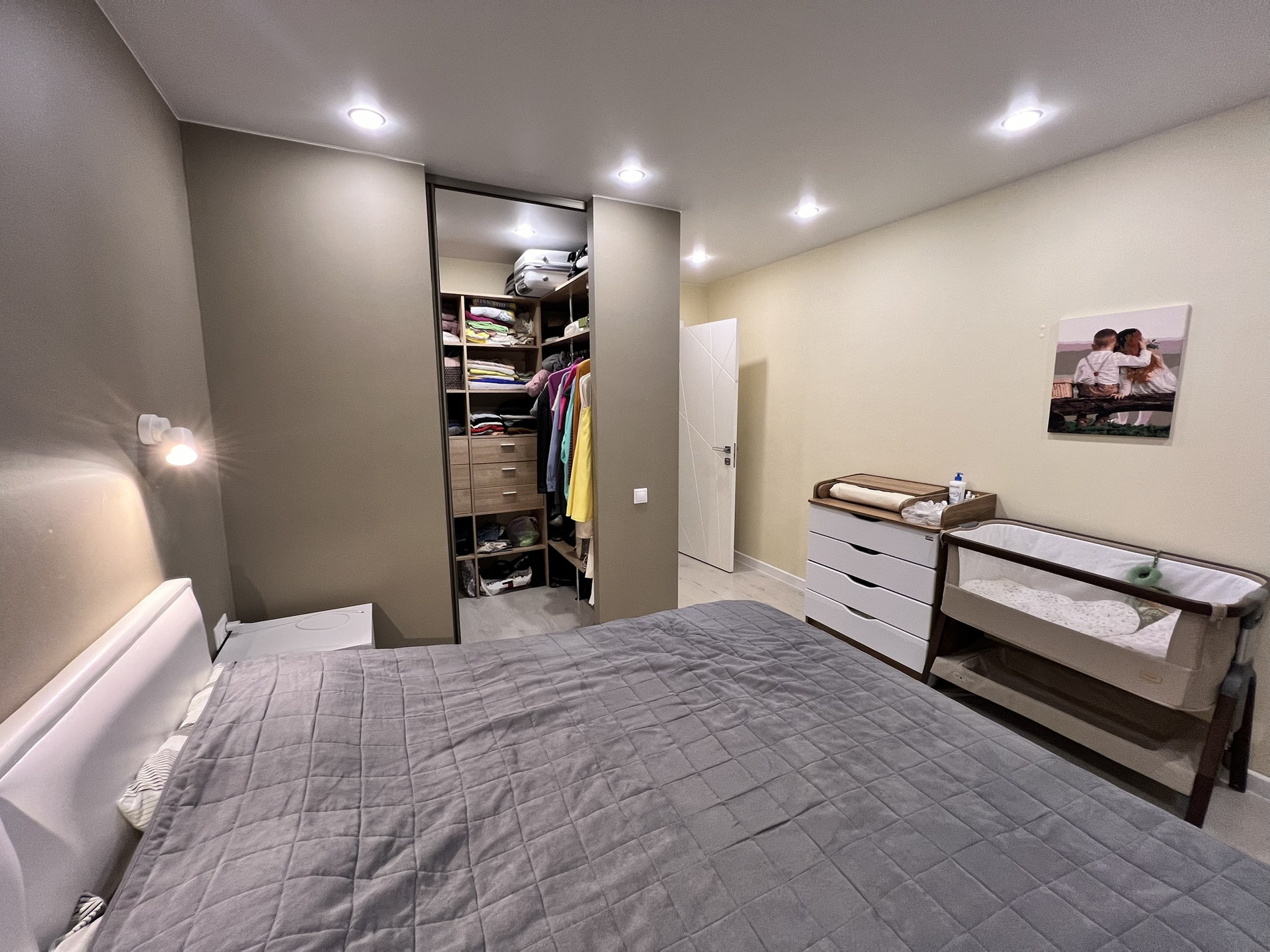 В квартире 2 гардеробных: входная и в спальне.