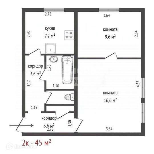 Общая площадь 45 м2