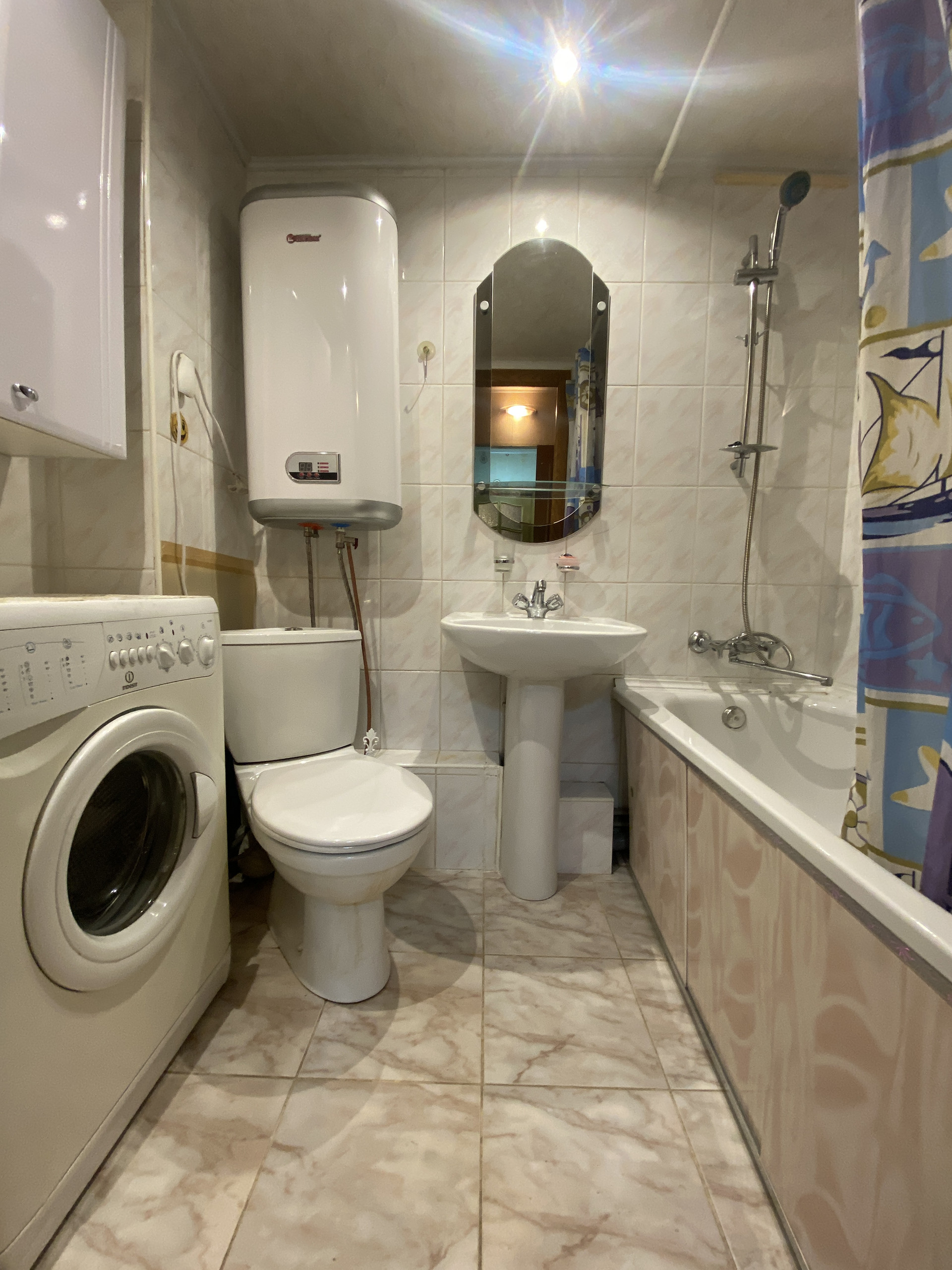 В санузле - теплый пол (также остается стиральная машина). Установлены счетчики на воду и эл/энергию.