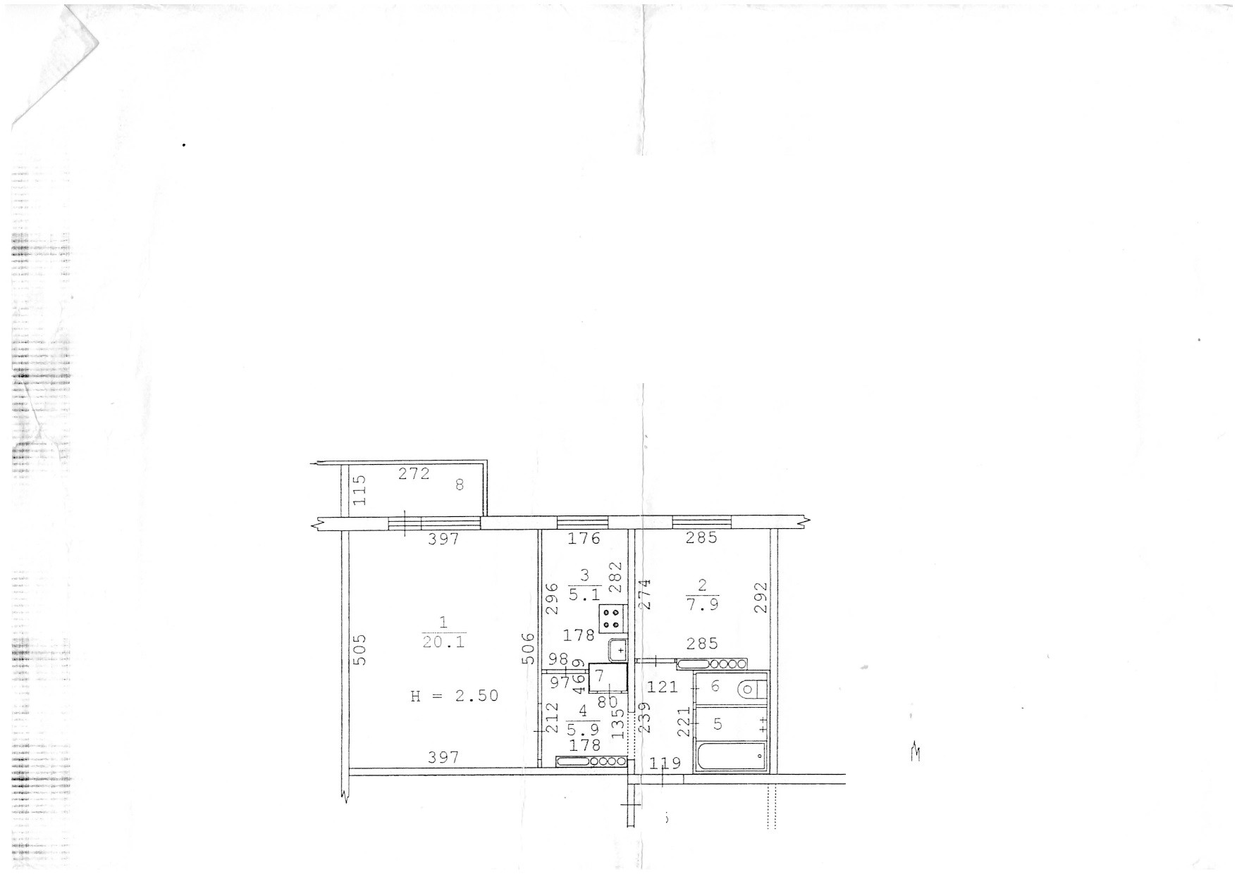 Площадь кухни 5.1 м2