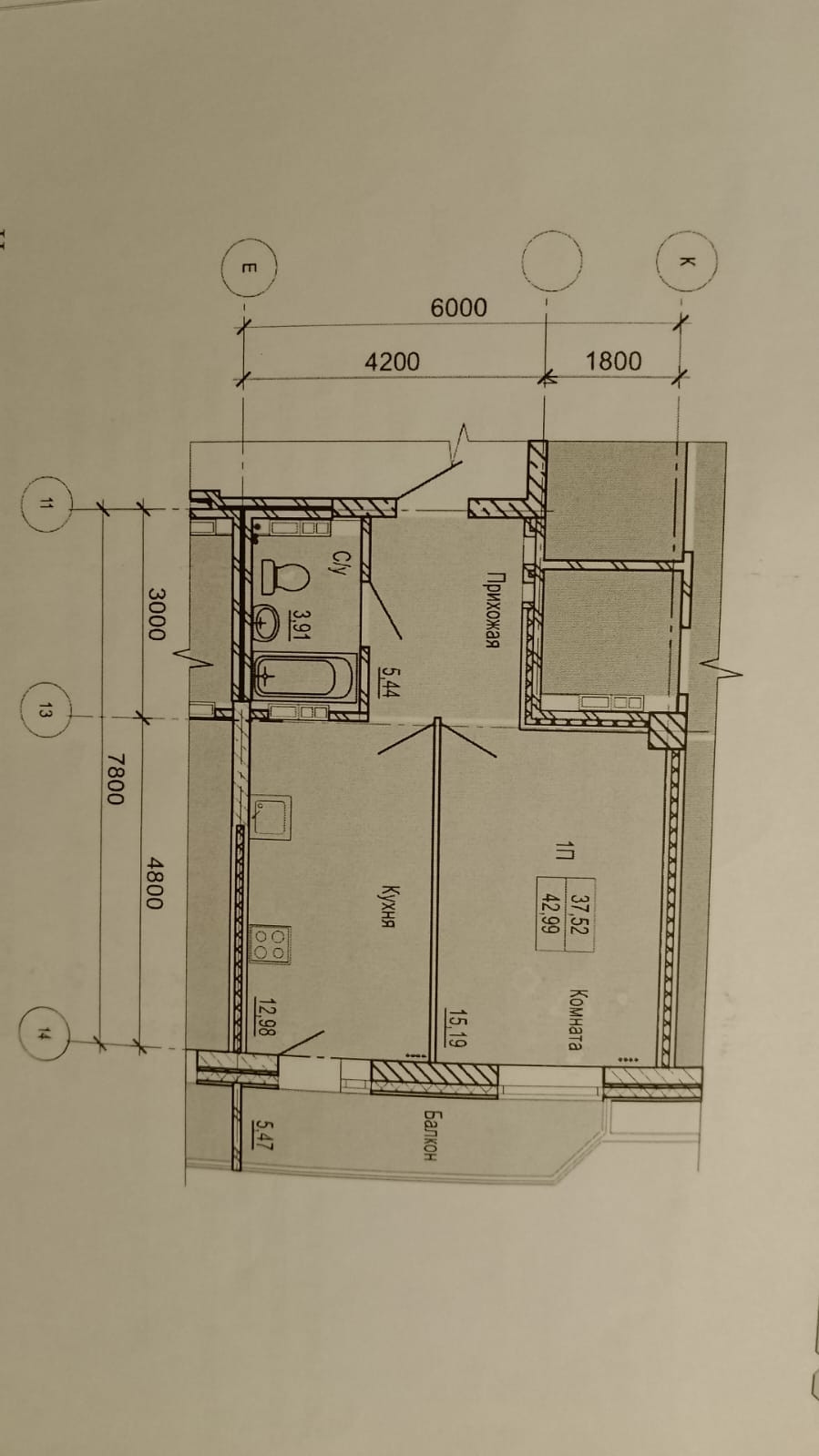 Общая площадь 38 м2