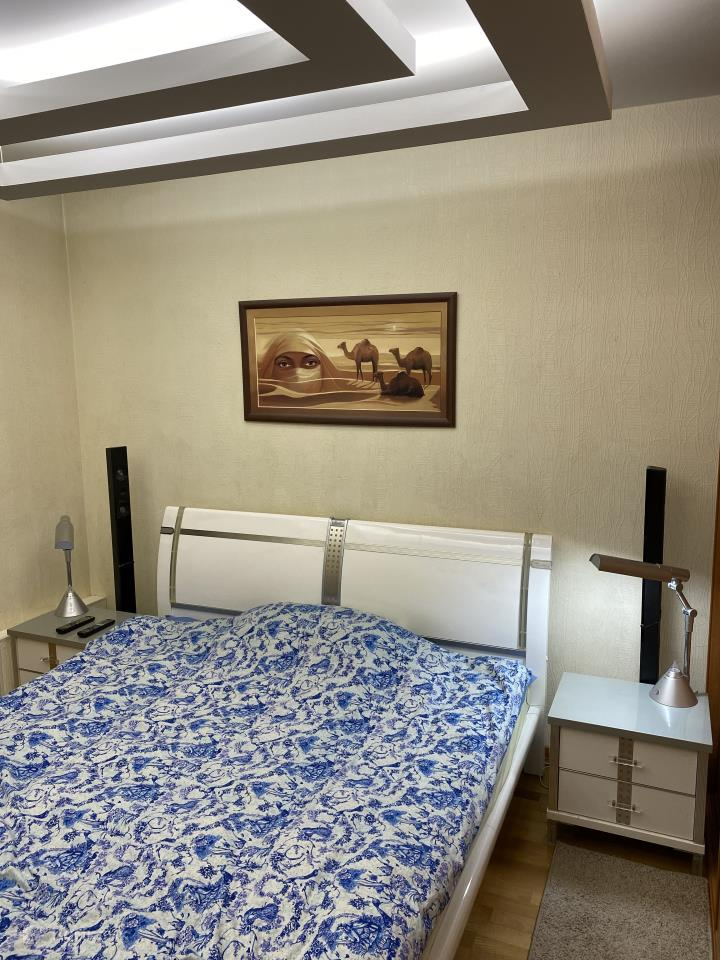 В квартире сделан качественный базовый ремонт. На полу паркетная доска уложена без порогов.   Два санузла, один из которых с сауной. Есть дополнительно место для хранения вещей.                                      Мебель, кухонный гарнитур со встроенной техникой, холодильник, стиральная машина, кондиционеры - входят в стоимость квартиры.                 Закрытая дворовая территория.   В шаговой доступности все виды транспорта, включая - метро.