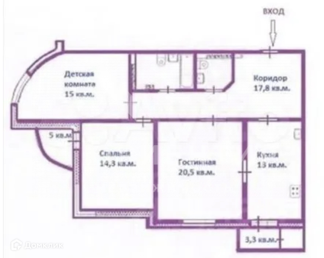 Жилая площадь 49.8 м2