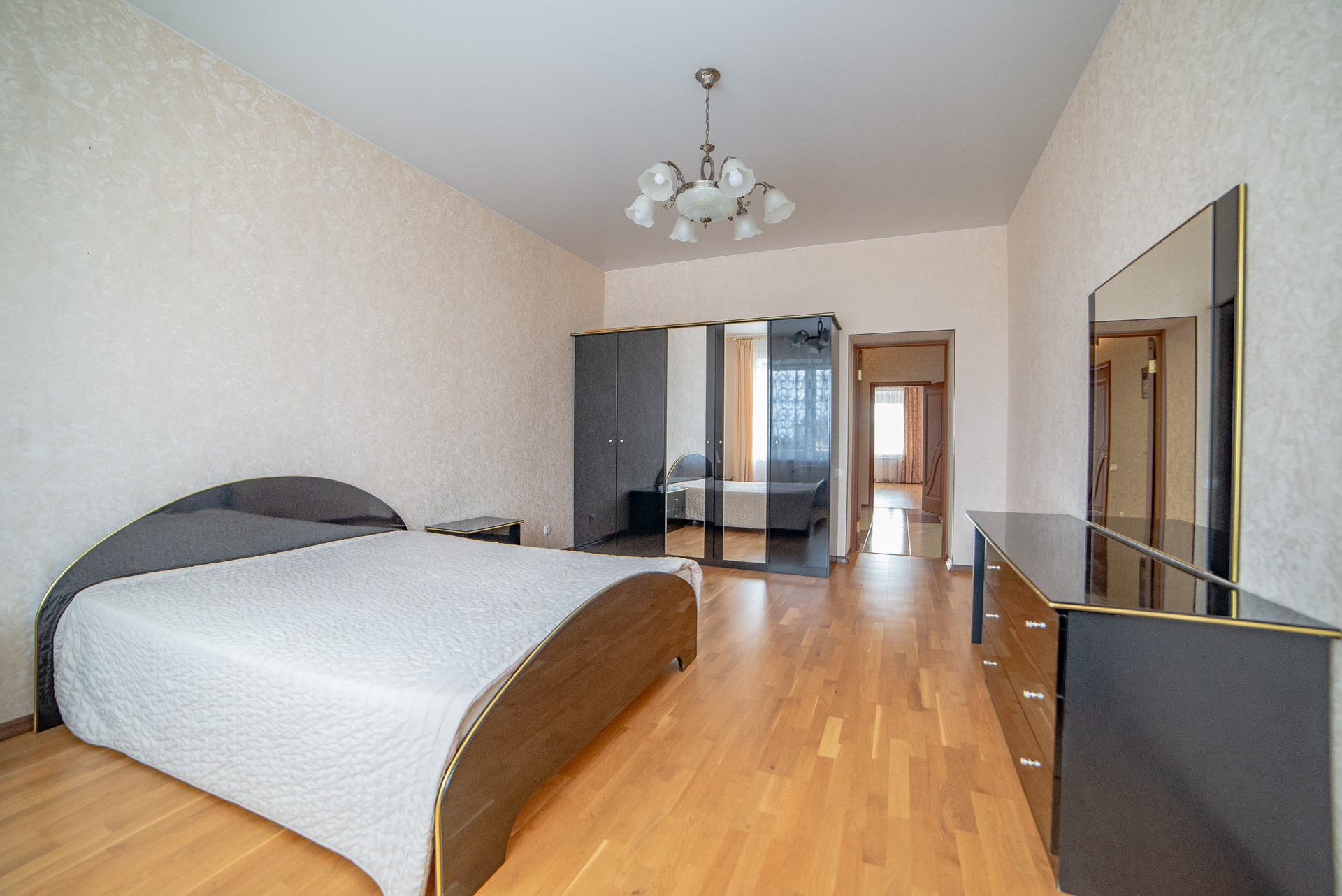 Планировка прямоугольная: Кухня, Три комнаты, Два балкона, Гардеробная, Ванная комната, гостевой санузел. Мебель и техника остаются в квартире.