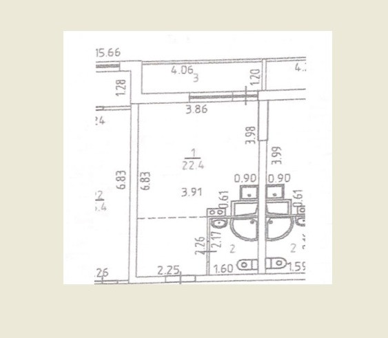 Жилая площадь 22.4 м2