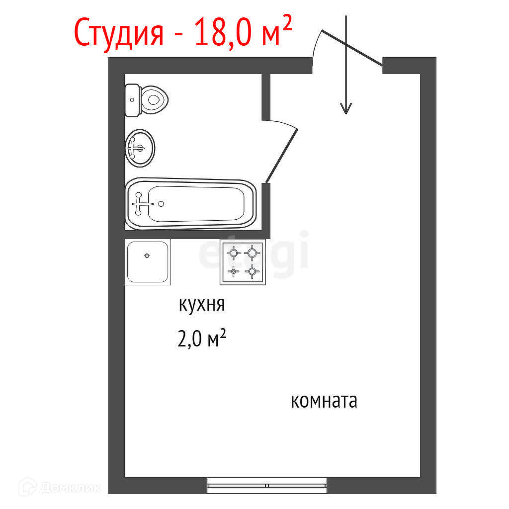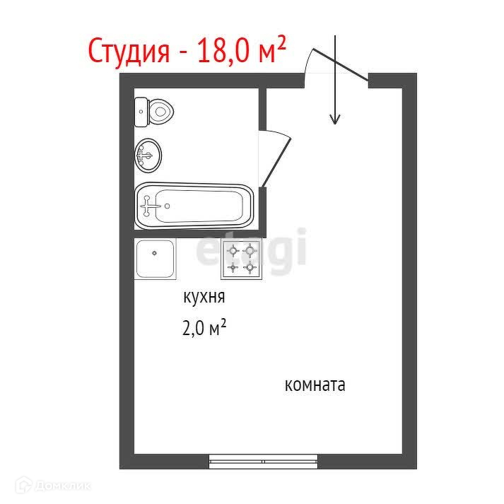 Общая площадь 18 м2