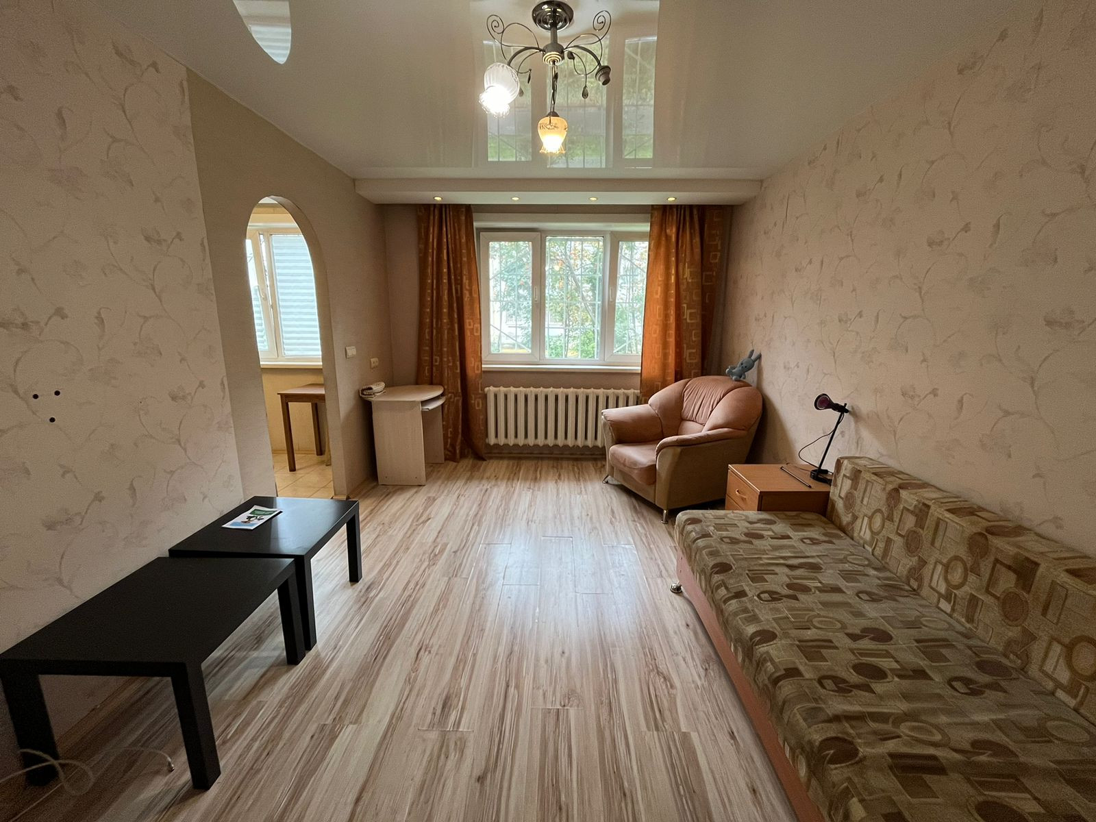В квартире установлены пластиковые окна с решетками, натяжные потолки в спальне и в зале, на кухне и в сан.узле на потолке пластиковые панели. В сан.узле сделан теплый пол (электрический), на стенах плитка. На полу ламинат. Квартира продается со всей мебелью и техникой.