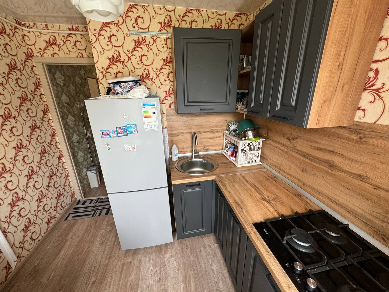 В квартире сделан ремонт, установлена сейф дверь, окна пластиковые, натяжной потолок, сан узел частично в кафеле, установлен кухонный гарнитур.