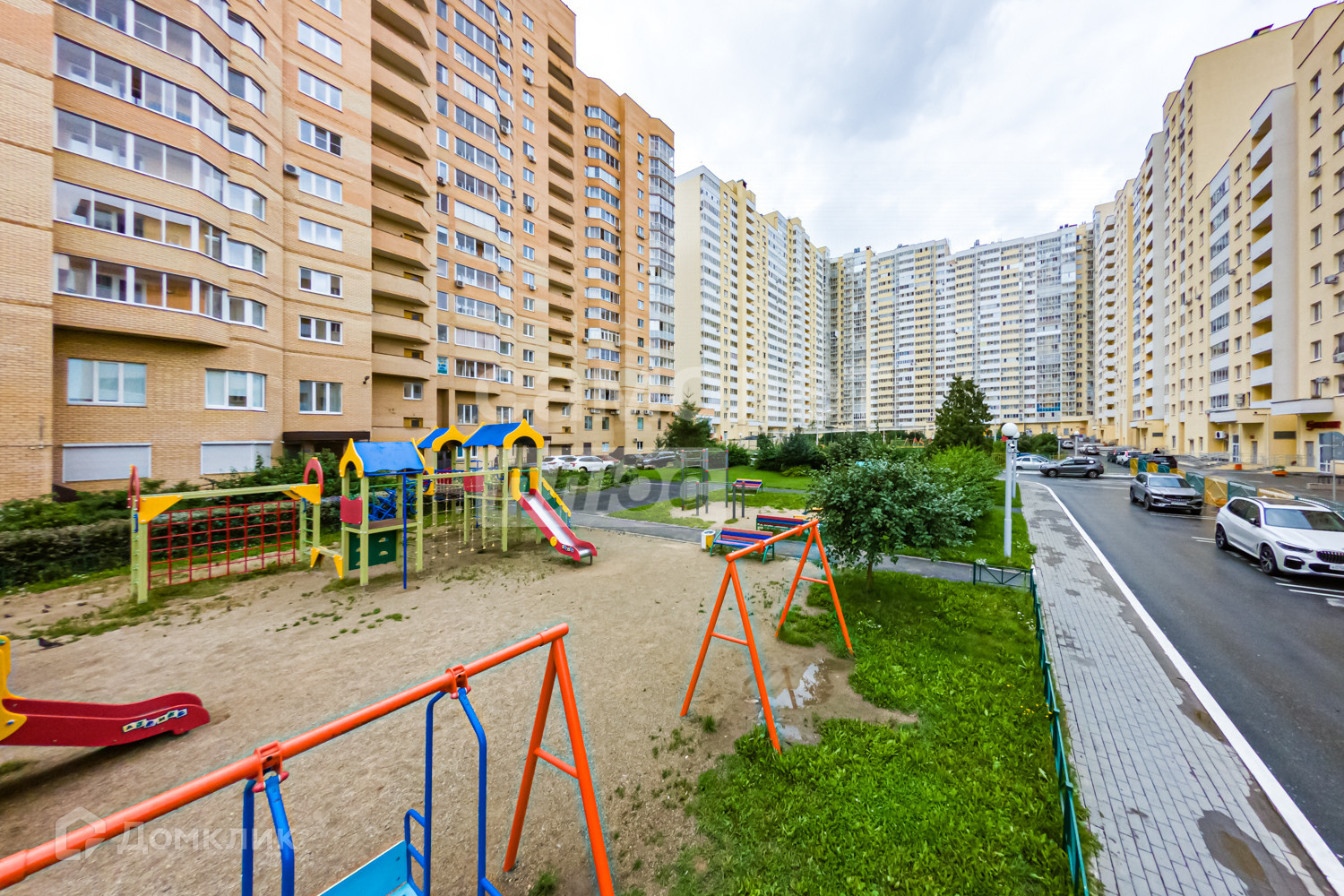 Современная детская площадка внутри двора