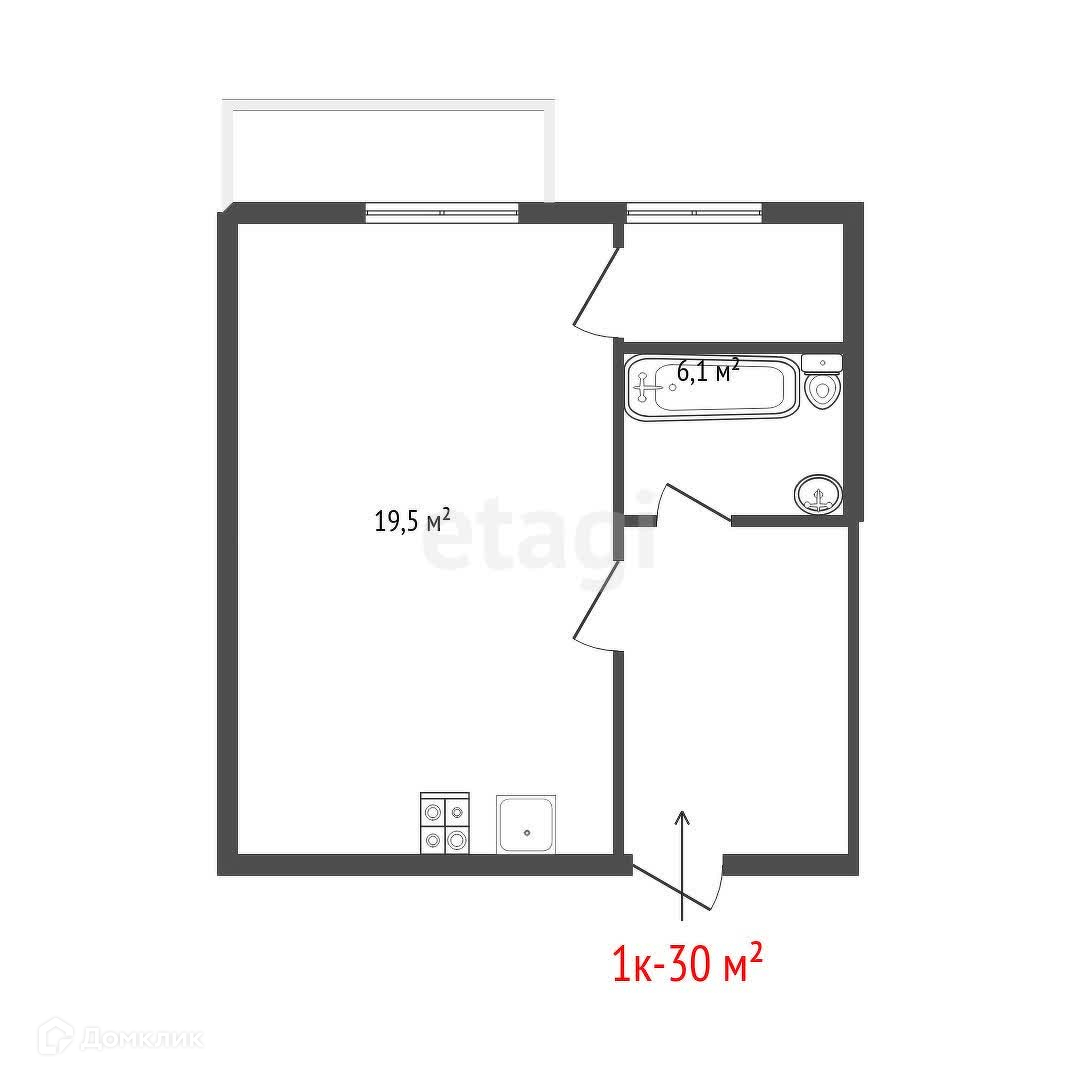 Общая площадь 30.2 м2