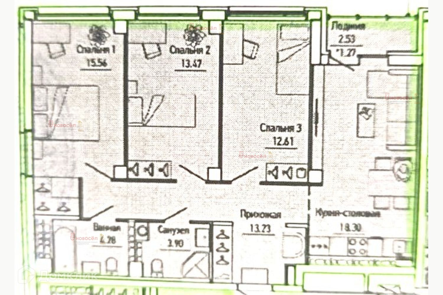 Количество комнат 3