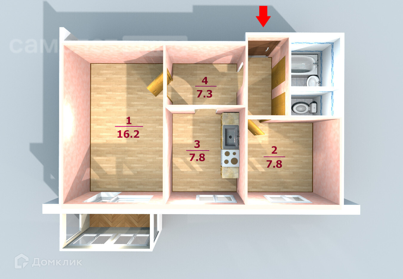Общая площадь 42.2 м2