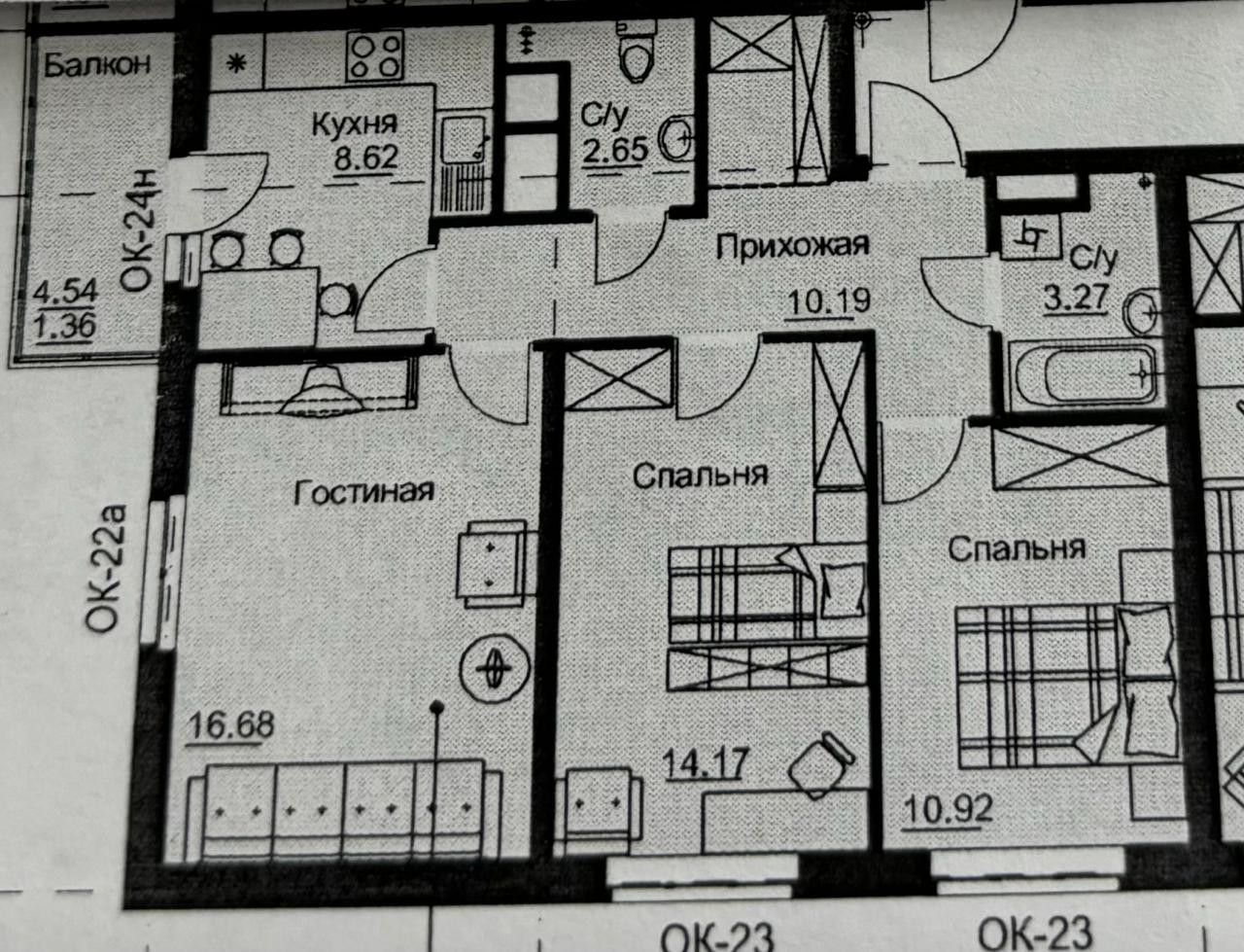 Жилая площадь 42 м2