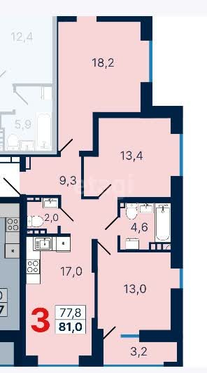 Общая площадь 77.5 м2