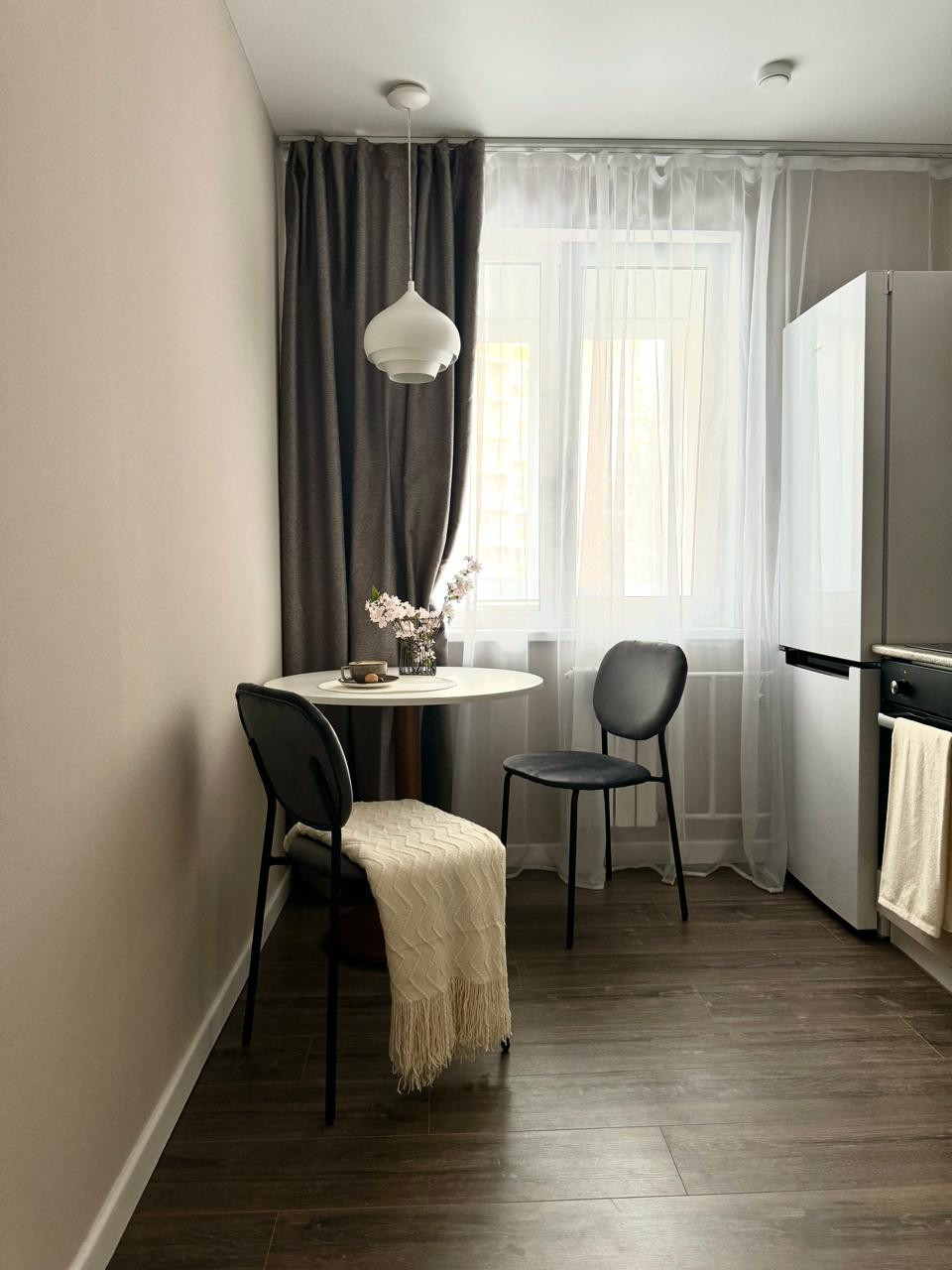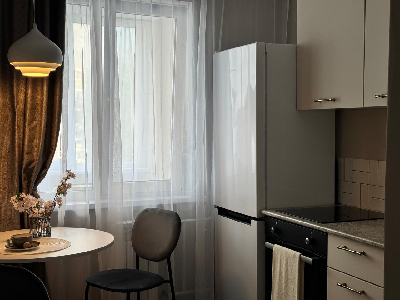Квартира выполнена в приятных теплых тонах, в мокрых зонах уложен керамогранит. Сделана новая разводка электрики, сантехники, установлены новые радиаторы. Квартира оснащена новым кухонным гарнитуром, бытовой техникой (холодильник, электрическая плита, духовой шкаф, посудомоечная машина), так же установлена новая мебель. Тёплый пол на лоджии.