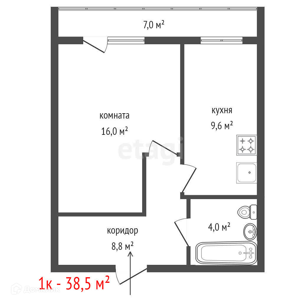 Общая площадь 38.4 м2