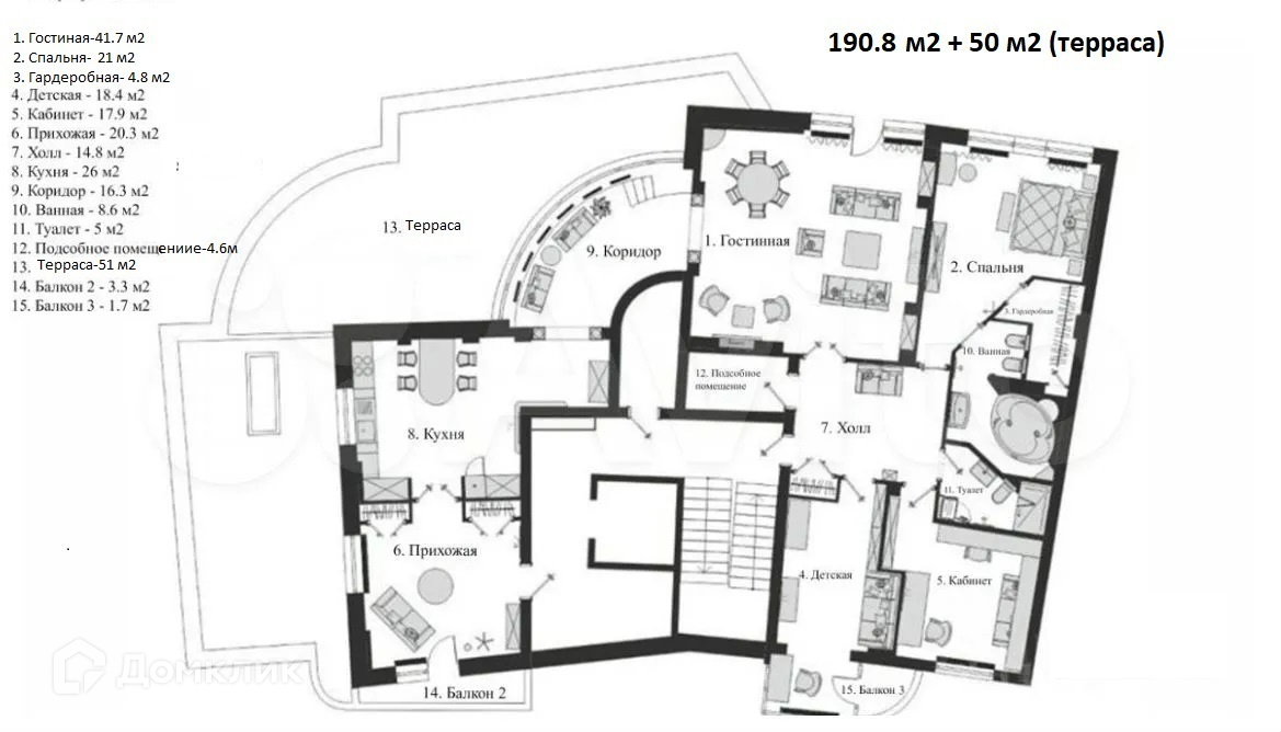 - Открытая терраса площадью 51 м2, оборудована навесным козырьком-маркизой с электроприводом.