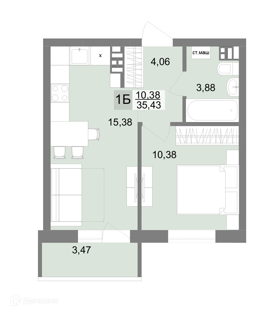 Общая площадь 35.43 м2